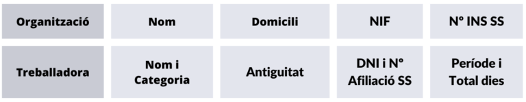 - Salari base: Pagament mensual mínim que rep la treballadora, en funció de la categoria dins de l’organització i del conveni col·lectiu.