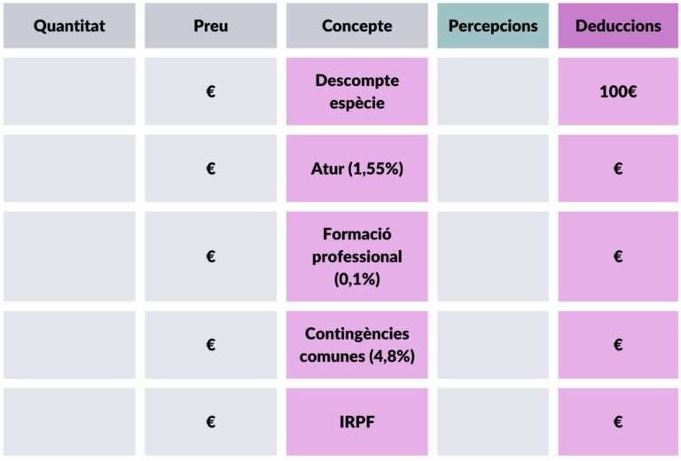 Les deduccions són els imports que es descompten del teu salari per motius diferents. Aquestes es classifiquen en: